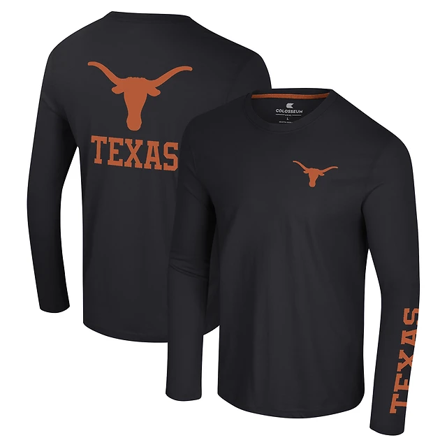 T-shirt à manches longues Colosseum Black Texas Longhorns Logo Lockup 3-Hit Active Blend pour hommes