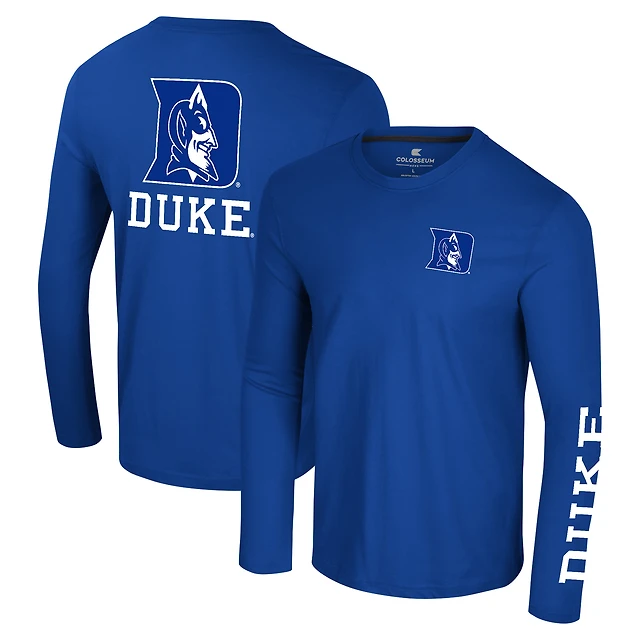 T-shirt à manches longues Colosseum Royal Duke Blue Devils Logo Lockup 3-Hit Active Blend pour hommes