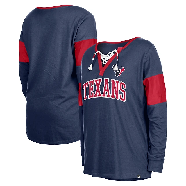 T-shirt à manches longues et col cranté lacets pour femme New Era bleu marine Houston Texans