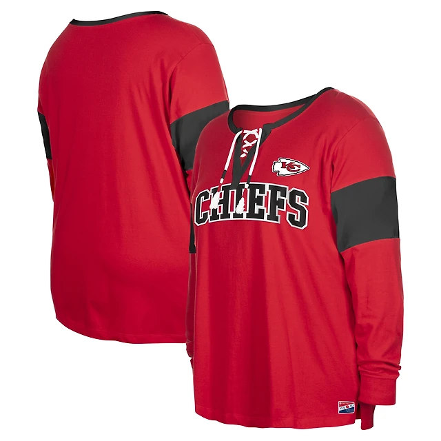 T-shirt à manches longues et col cranté lacets pour femme New Era rouge Kansas City Chiefs grande taille