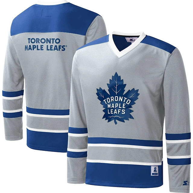 T-shirt à manches longues et col en V des Maple Leafs de Toronto Starter gris pour homme