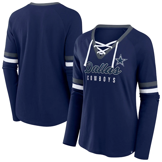 T-shirt à manches longues et col en V lacets pour femmes Fanatics Navy Dallas Cowboys grande taille Won & Done