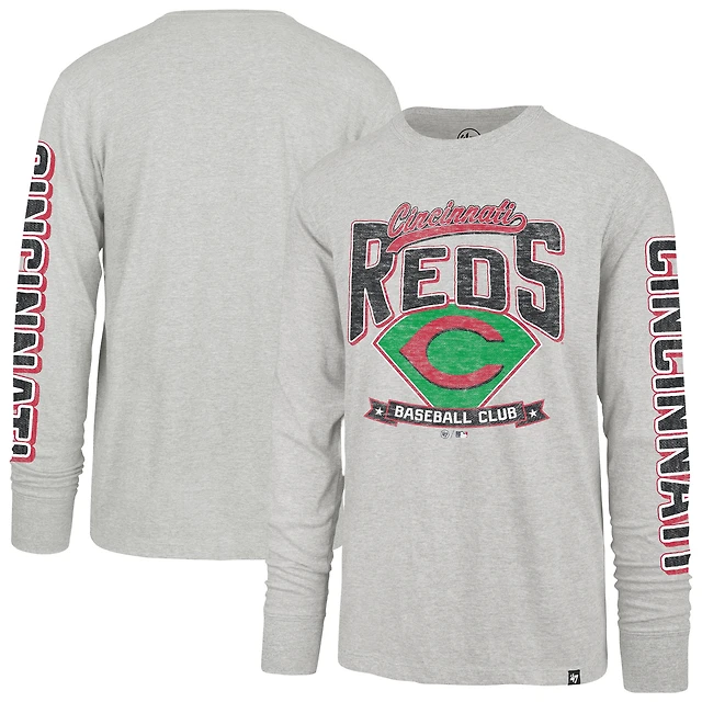 T-shirt à manches longues Fair Ball Franklin pour homme, gris, 1947, Cincinnati Reds