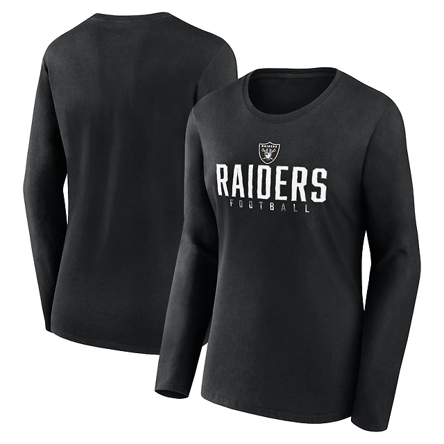 T-shirt à manches longues Fanatics pour femmes, noir, Las Vegas Raiders, grande taille, Foiled Play