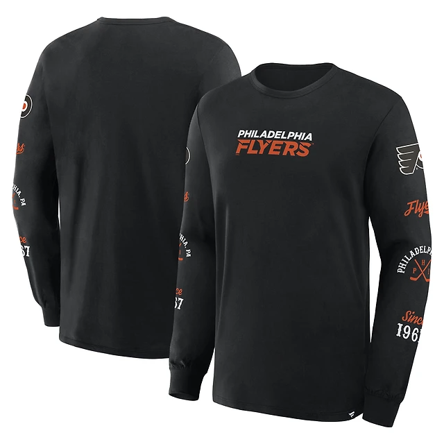 T-shirt à manches longues Fanatics pour homme, noir, avec logo en boîte des Flyers de Philadelphie