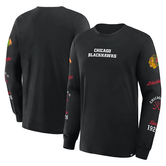 T-shirt à manches longues Fanatics pour homme, noir, Chicago Blackhawks, avec logo Legacy
