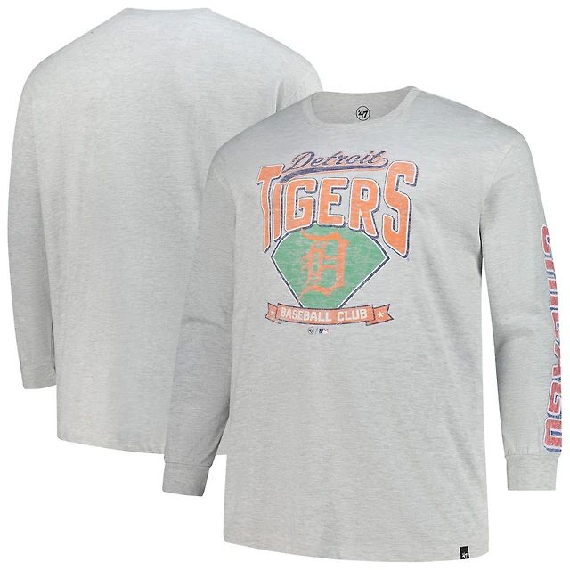 T-shirt à manches longues Franklin gris vieilli pour homme, modèle Big & Tall, des Detroit Tigers, '47