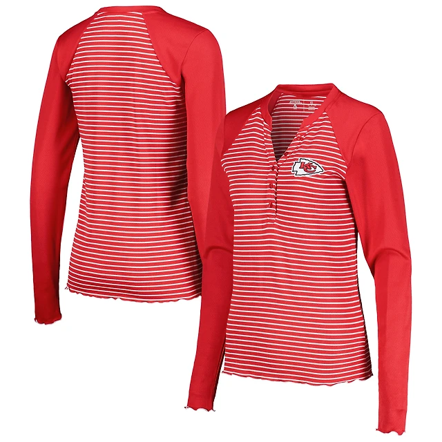 T-shirt à manches longues gaufré Maverick Henley rouge Antigua pour femme des Kansas City Chiefs