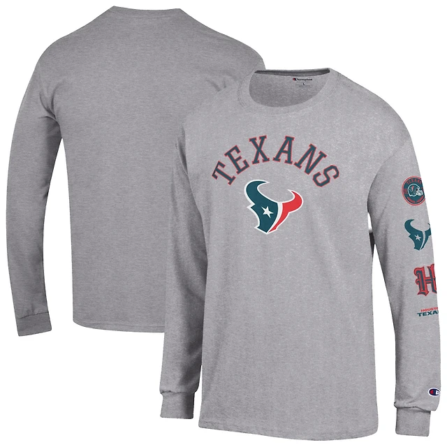 T-shirt à manches longues gris chiné Champion pour homme des Houston Texans Seal