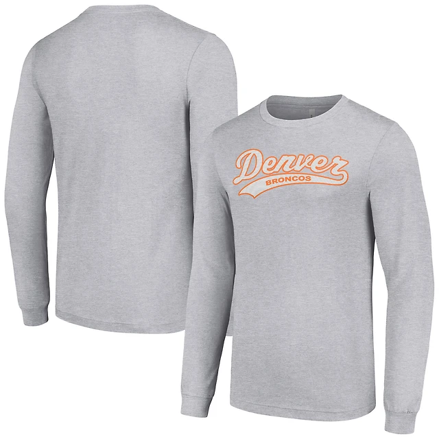 T-shirt à manches longues gris chiné pour homme, motif Tailsweep des Denver Broncos