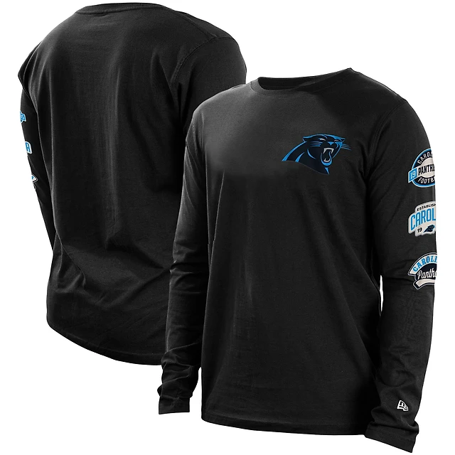 T-shirt à manches longues Hype 2-Hit des Panthers de la Caroline noirs New Era pour homme