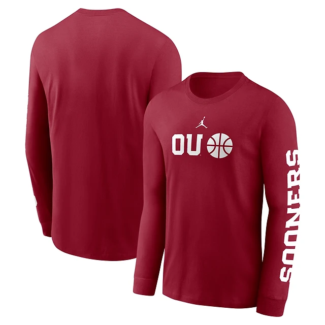 T-shirt à manches longues Jordan Brand Crimson Oklahoma Sooners Basketball Icon Two-Hit pour homme