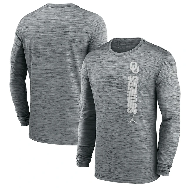 T-shirt à manches longues Jordan Brand gris Oklahoma Sooners 2024 Sideline Velocity Dri-FIT pour homme