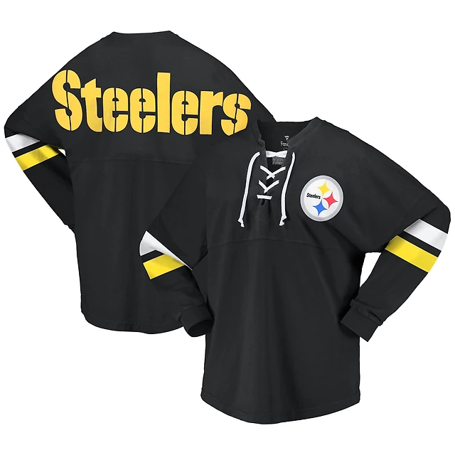 T-shirt à manches longues lacets et col en V Fanatics pour femmes, Pittsburgh Steelers Spirit, noir
