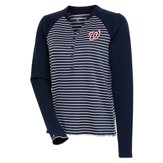T-shirt à manches longues Maverick Henley bleu marine/blanc Antigua pour femme des Washington Nationals