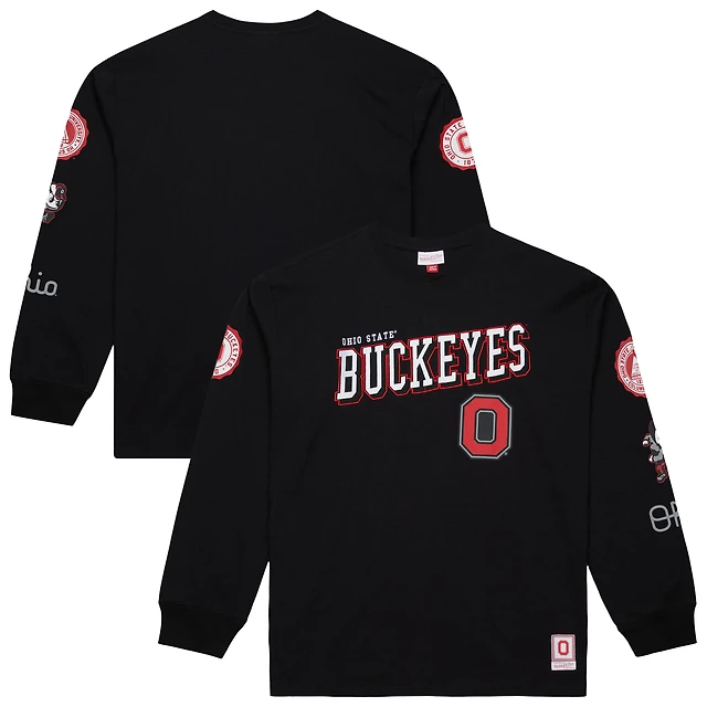 T-shirt à manches longues Mitchell & Ness noir pour homme, camp d'entraînement des Ohio State Buckeyes
