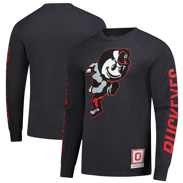 T-shirt à manches longues Mitchell & Ness pour homme, couleur anthracite, Ohio State Buckeyes Team Pride