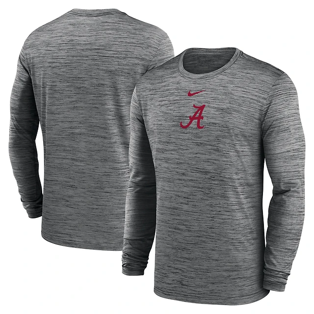 T-shirt à manches longues Nike Alabama Crimson Tide 2025 Sideline Velocity Dri-FIT pour homme, couleur charbon