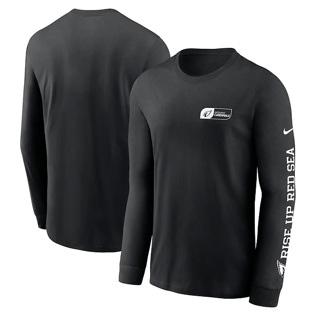 T-shirt à manches longues Nike All Out pour homme, noir, Arizona Cardinals