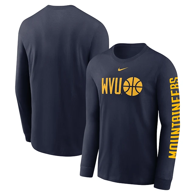 T-shirt à manches longues Nike bleu marine West Virginia Mountaineers Basketball Icon Two-Hit pour homme