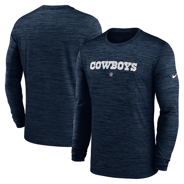 T-shirt à manches longues Nike Dallas Cowboys Sideline Team Velocity Performance pour homme - Bleu marine