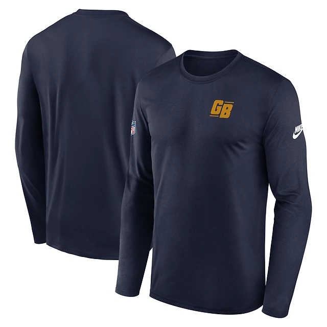 T-shirt à manches longues Nike Dri-FIT bleu marine pour homme avec petit logo Legend des Packers de Green Bay