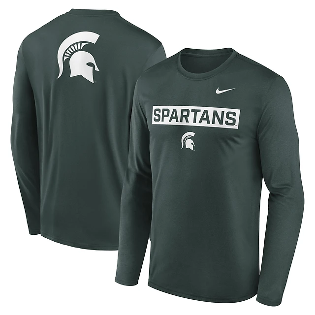 T-shirt à manches longues Nike Michigan State Spartans Primetime Campus 2-Hit Legend Dri-FIT vert pour homme