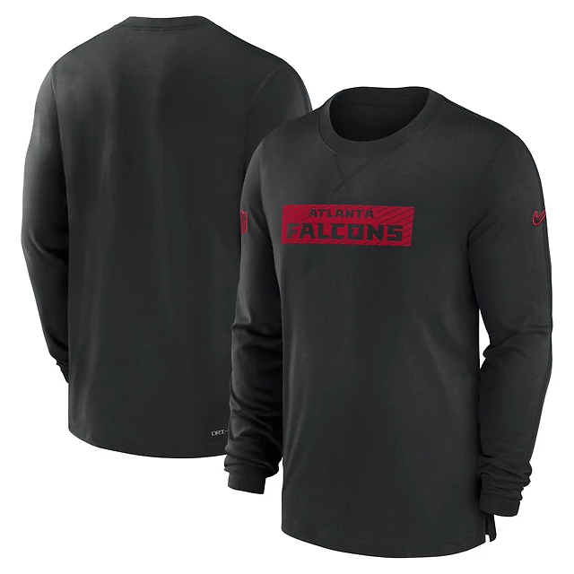 T-shirt à manches longues Nike noir Atlanta Falcons Sideline Player Performance pour homme