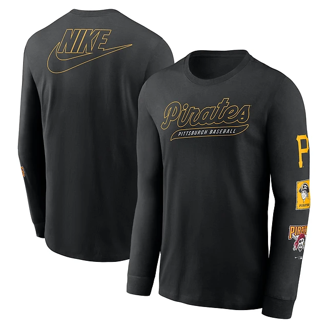 T-shirt à manches longues Nike noir pour homme, collection Cooperstown, Pirates de Pittsburgh, Knockout
