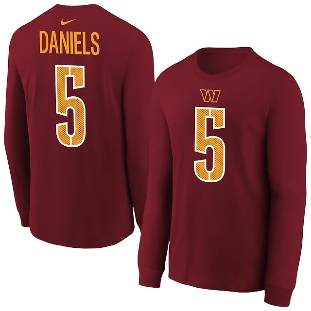 T-shirt à manches longues Nike pour jeune Jayden Daniels, bordeaux, avec nom et numéro du joueur des Washington Commanders