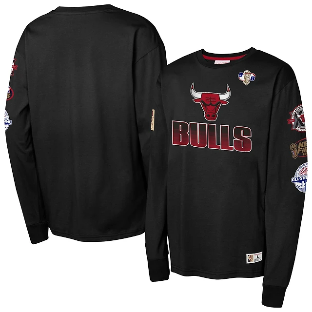 T-shirt à manches longues noir Chicago Bulls Hardwood Classics pour jeunes Mitchell & Ness
