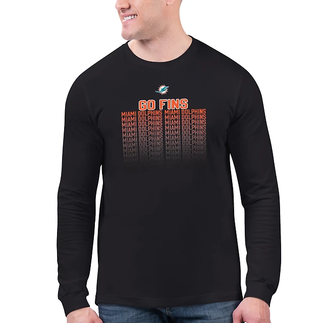 T-shirt à manches longues noir pour homme avec slogan des Miami Dolphins