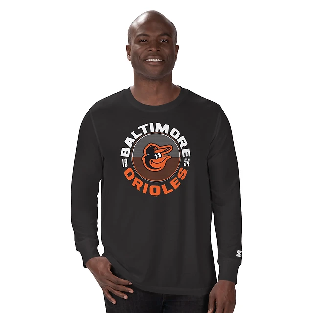 T-shirt à manches longues noir pour homme, motif mi-temps des Orioles de Baltimore
