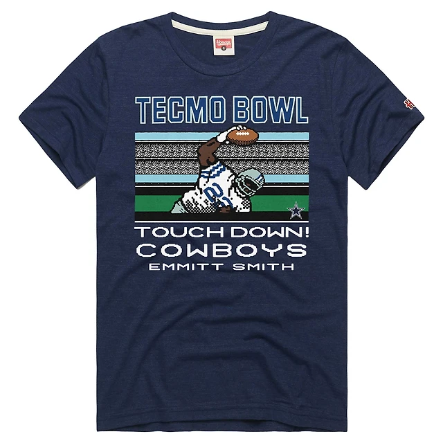 T-shirt à manches longues pour homme avec logo en hommage Emmitt Smith des Cowboys de Dallas Tecmo Bowl, joueur retraité, bleu marine