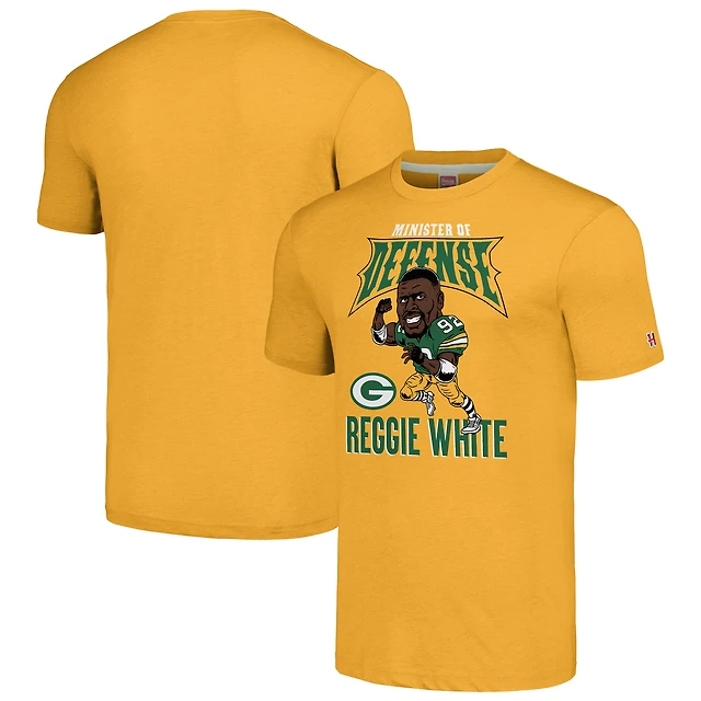T-shirt à manches longues pour homme avec logo Reggie White Gold des Packers de Green Bay, joueur retraité