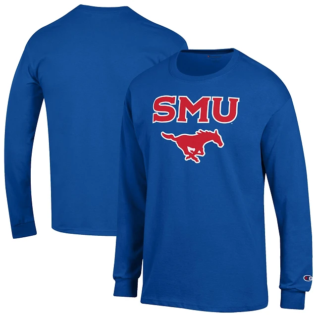 T-shirt à manches longues pour homme Champion Royal SMU Mustangs Arch Over Logo