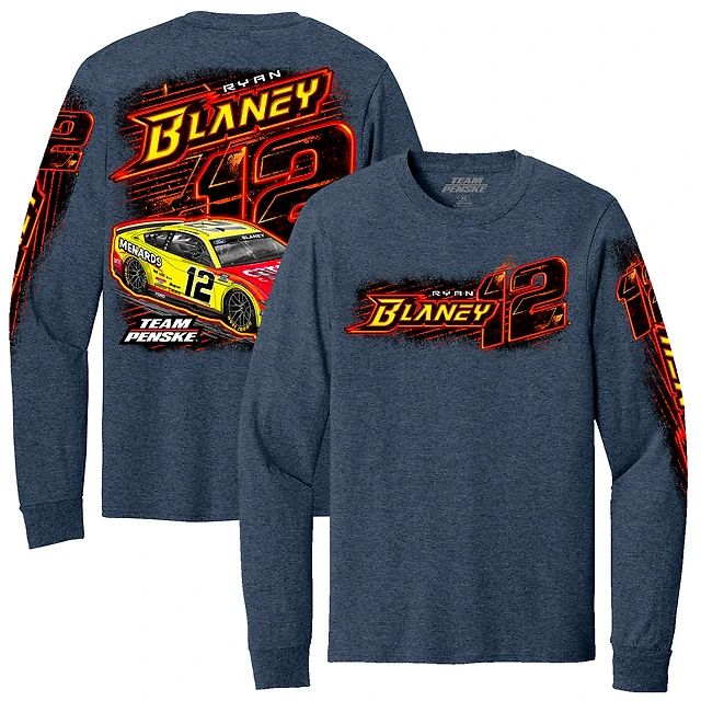 T-shirt à manches longues pour homme de l'équipe Penske Heather Navy Ryan Blaney Menards Cardell #12 Car