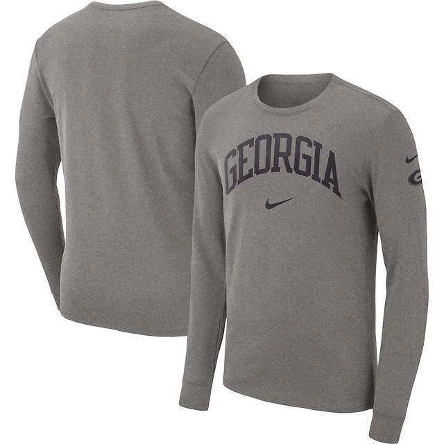 T-shirt à manches longues pour homme Georgia Bulldogs Arch 2-Hit Nike, gris chiné