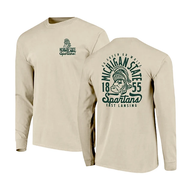 T-shirt à manches longues pour homme, motif mascotte des Spartans de l'État du Michigan, couleurs naturelles et confortables