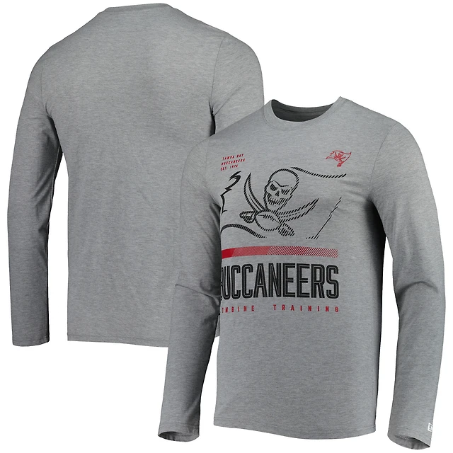 T-shirt à manches longues pour homme Tampa Bay Buccaneers Combine Authentic Red Zone New Era gris chiné