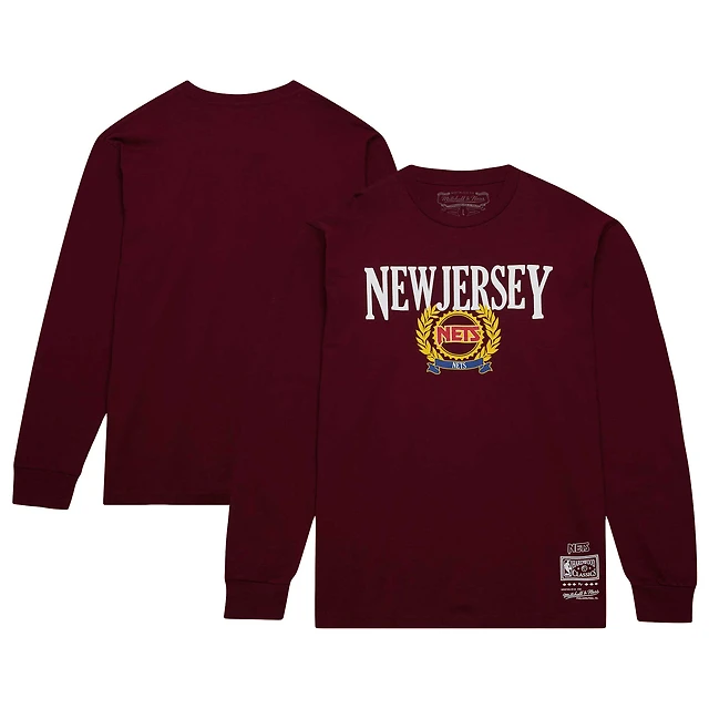 T-shirt à manches longues pour hommes Mitchell & Ness New Jersey Nets Hardwood Classics Ivy League rouge