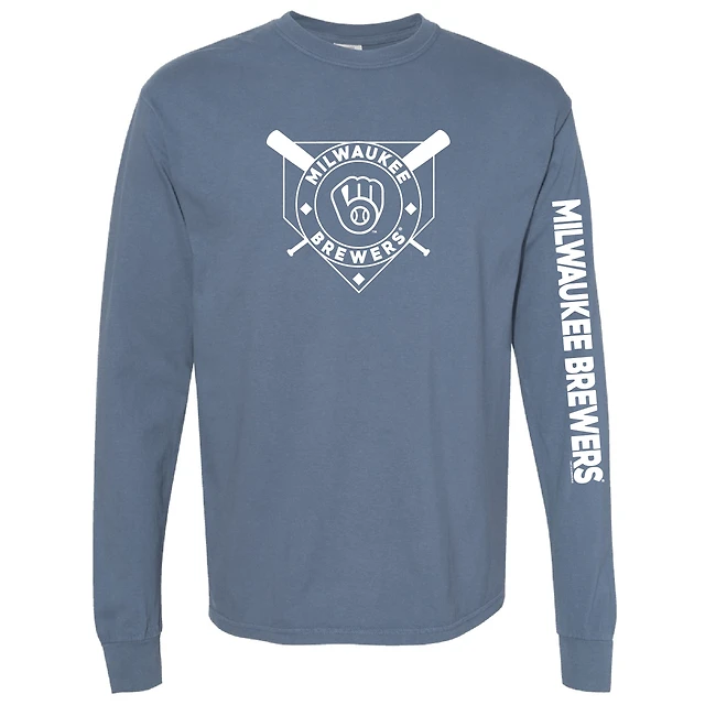 T-shirt à manches longues teinté pigmenté bleu marine Milwaukee Brewers pour femme, doux comme un raisin