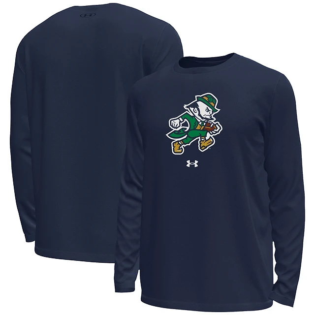 T-shirt à manches longues Under Armour bleu marine Notre Dame Fighting Irish Leprechaun HeatGear pour homme