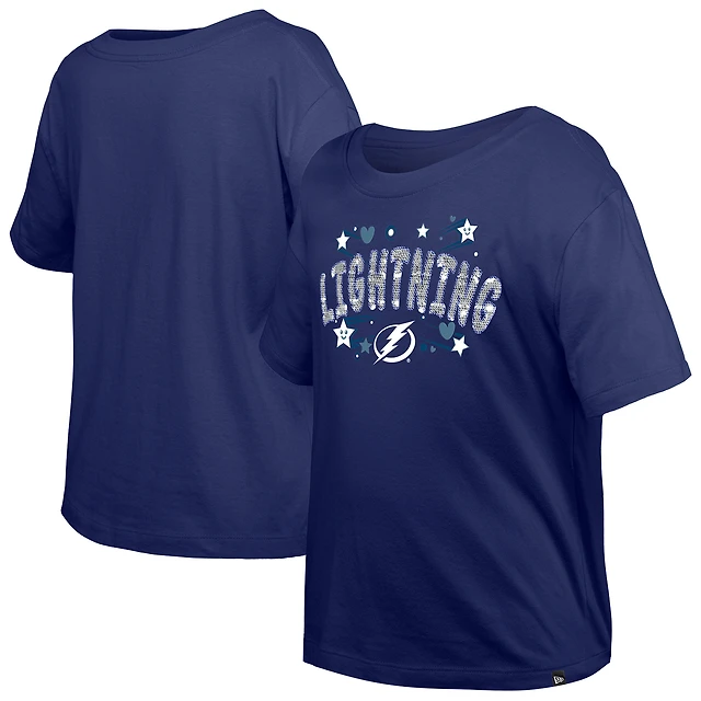 T-shirt à paillettes bleu Tampa Bay Lightning Flip pour fille New Era Youth