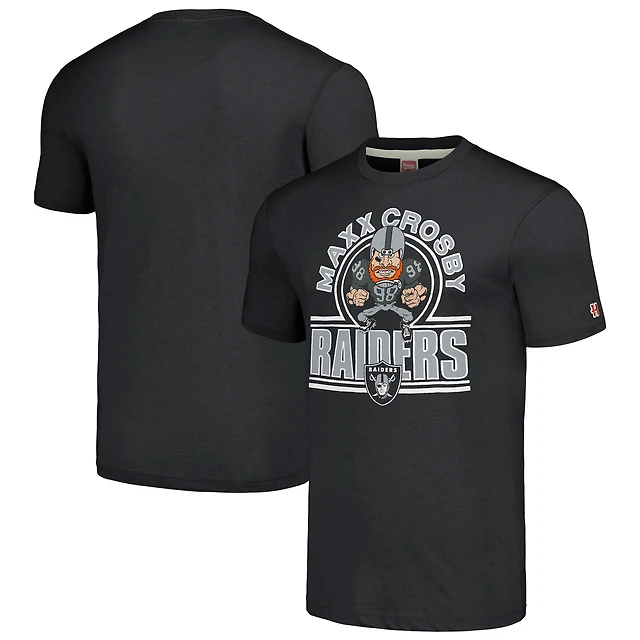 T-shirt à trois mélanges Hommage Maxx Crosby Charcoal Las Vegas Raiders Caricature Player pour hommes