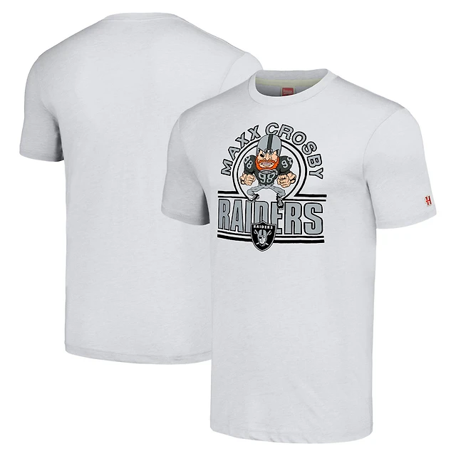 T-shirt à trois mélanges Hommage Maxx Crosby Heathered Ash pour hommes Las Vegas Raiders Caricature Player