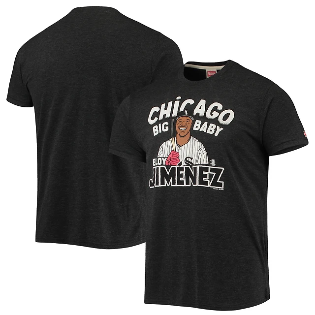 T-shirt à trois mélanges pour hommes, hommage Eloy Jimenez, noir chiné, caricature des White Sox de Chicago