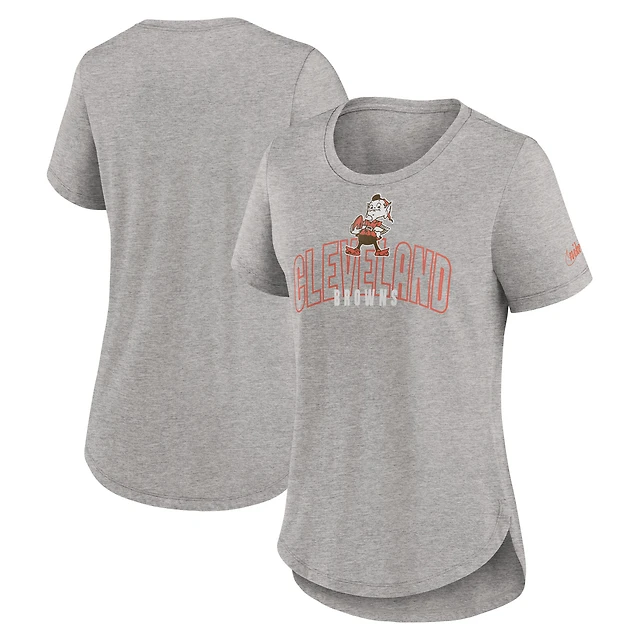 T-shirt à trois mélanges tendance Cleveland Browns Nike pour femme, gris chiné