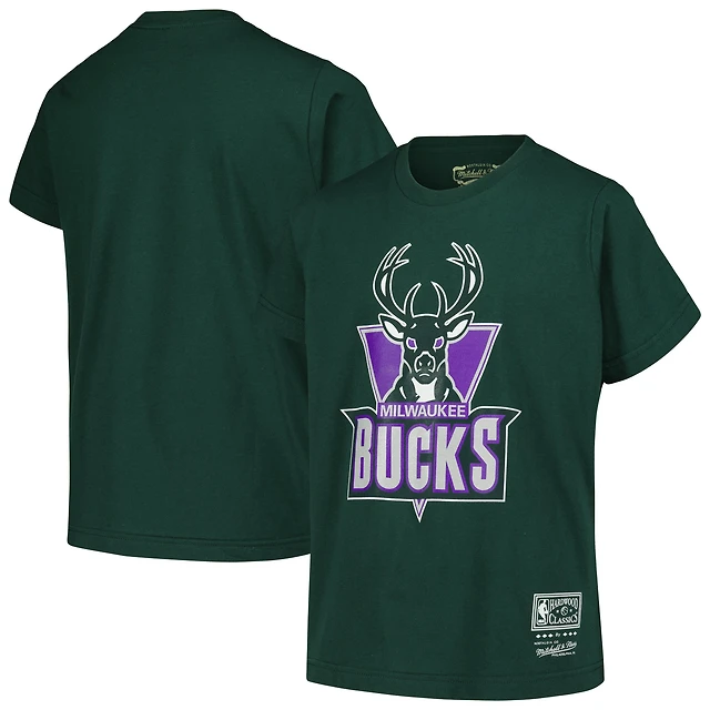 T-shirt avec logo rétro Mitchell & Ness Hunter Green Milwaukee Bucks Hardwood Classics pour jeunes