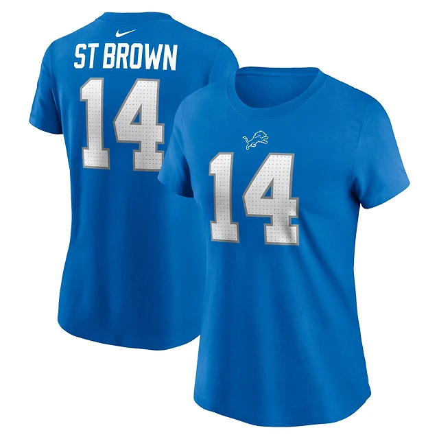 T-shirt avec nom et numéro de joueur Nike Amon-Ra St. Brown Blue Detroit Lions pour femme